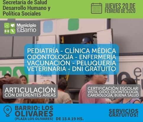 La presencia municipal se extenderá entre las 15 y las 19, y un aspecto importante para los vecinos, es que habrá médicos presentes para otorgar los certificados de salud que se exigen a los alumnos en las escuelas, luego de realizarse los correspondientes controles cardiológicos, de nariz, garganta, oído, vista.