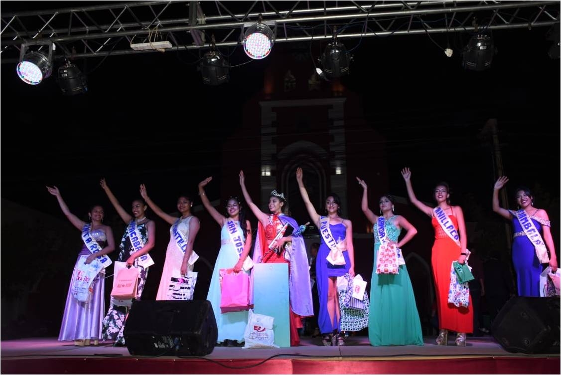 El viceintendente, Daniello Cerezo, la concejal Florencia Casimiro y Máximo Moreno, el secretario de Turismo, Cultura y Educación Marcos Stieb y miembros del jurado hicieron entrega de los atributos a la Soberana y princesas, como así también la reina saliente, Maia Luz Cortez.