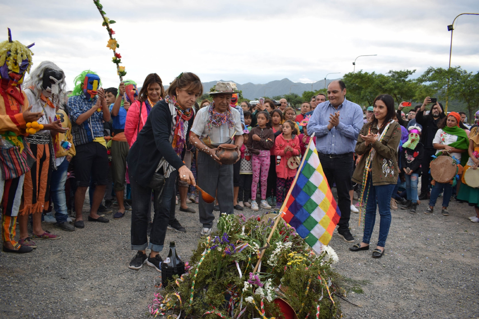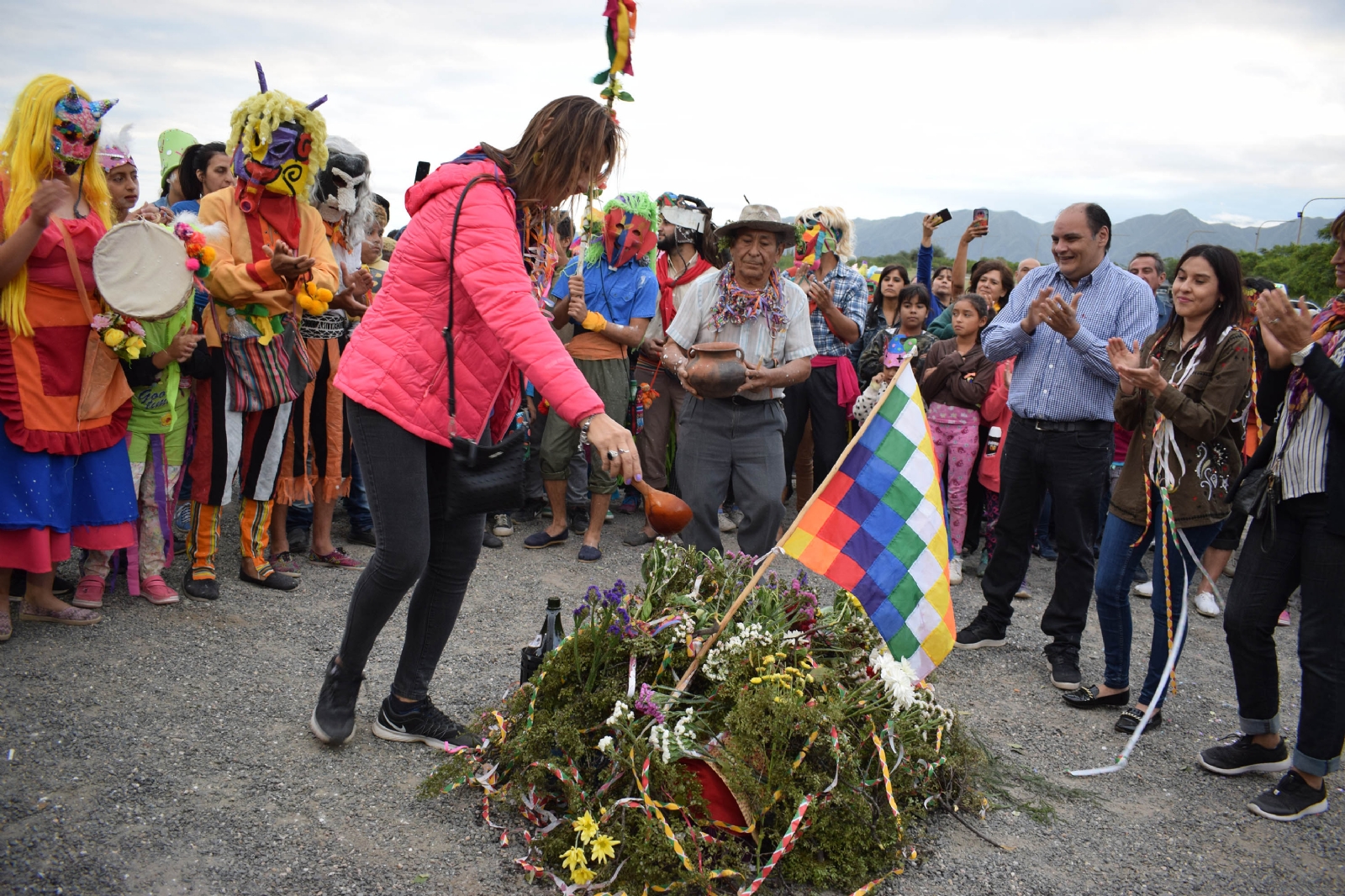 Apacheta de piedra, un muñeco de trapo que simboliza el Pujllay, vino, albahaca, harina, coplas y danzas no faltaron en el desarrollo de este ancestral ritual de la fiesta del Carnaval que se complementa con las ceremonias del Jueves de Compadres y el Jueves de Comadres, y que tendrá su fin con el Entierro del Carnaval el próximo 1° de marzo, desde las 18, en la plaza “Huayra Tawa”.