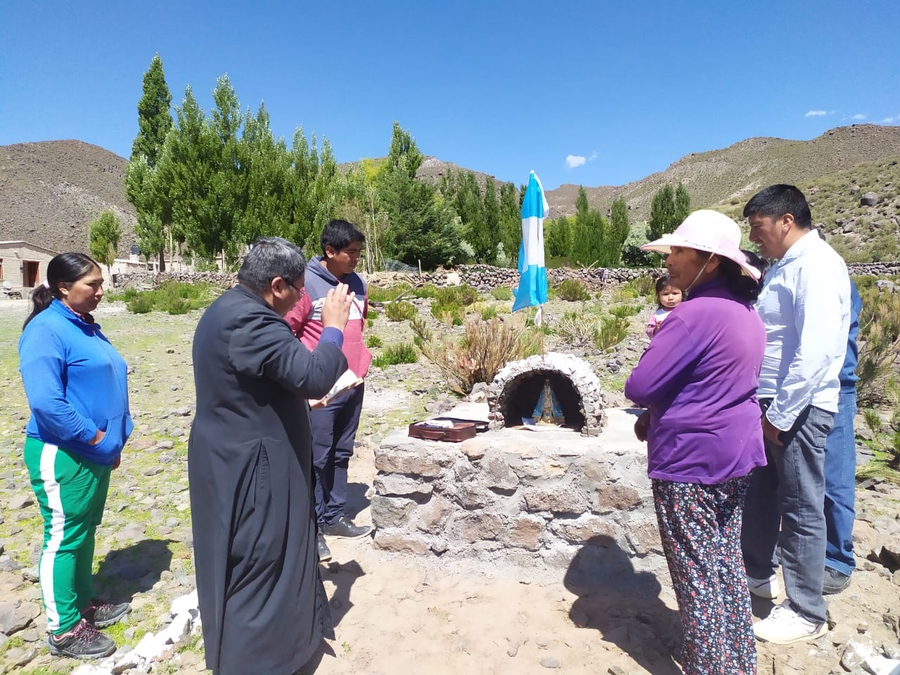 El sacerdote destacó que “ya se bendijo la primera gruta, en Laguna Blanca, así que ya nos quedan 399. Esta gruta se levantó en la entrada al pueblo, en la casa de doña Lucrecia; es chica y bajita, muy sencilla, y el material que se utilizó es la piedra, porque debe asemejarse lo que más se pueda a la Gruta de Choya, que es de piedra”.