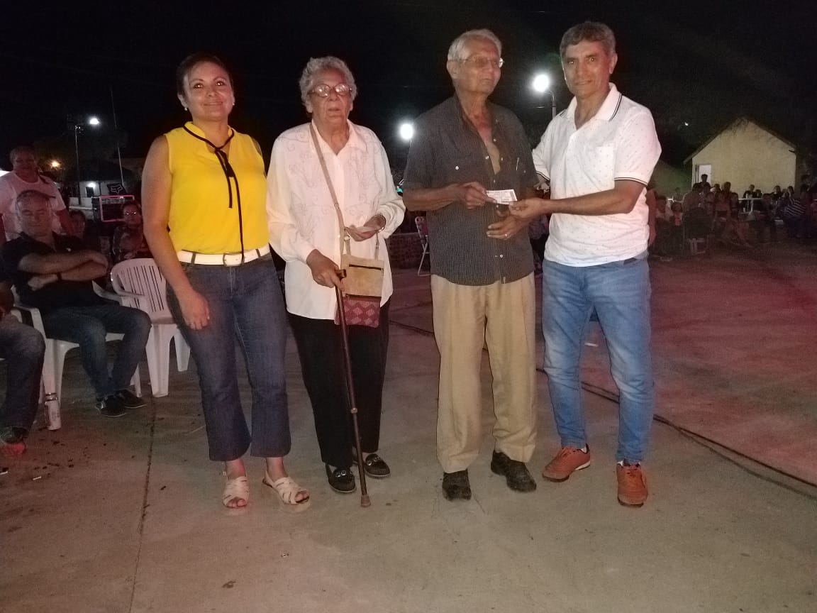 Durante la noche, el intendente Luis Polti entregó a través de los concejales Melisa Herrera y Mario Máquez, dos abonos a cada pareja, para las tres noches del Festival Nacional del Cabrito a las familias Roldán y Bazán.