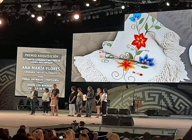 “Y este año fue una sorpresa para mí –continuó relatando- éramos más de 200 artesanos y el jurado recorría todos los stands, pero nunca me imaginé que podía ganar. Eligieron una prenda mía y me pidieron que no la venda, con ella fui superando las preselecciones y al final me comunicaron que mi tejido fue seleccionado como ganador”. Se trata de un cubrecama de 2 plazas con doble hilo, con bordado de flores, que sobresalió a los ojos del jurado, entre variados productos que Ana María llevó para exponer y vender.
