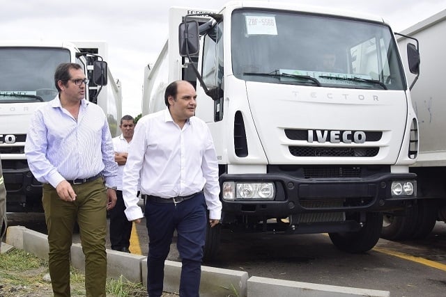 Barrionuevo detalló que los vehículos grandes “son dos camiones compactadores que tienen una capacidad de almacenamiento de 17 metros cúbicos cada uno, que se utilizan en la recolección de residuos, también programados para levantar contenedores, y se pondrán de inmediato al servicio de los vecinos”.