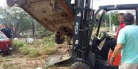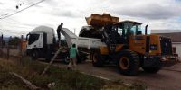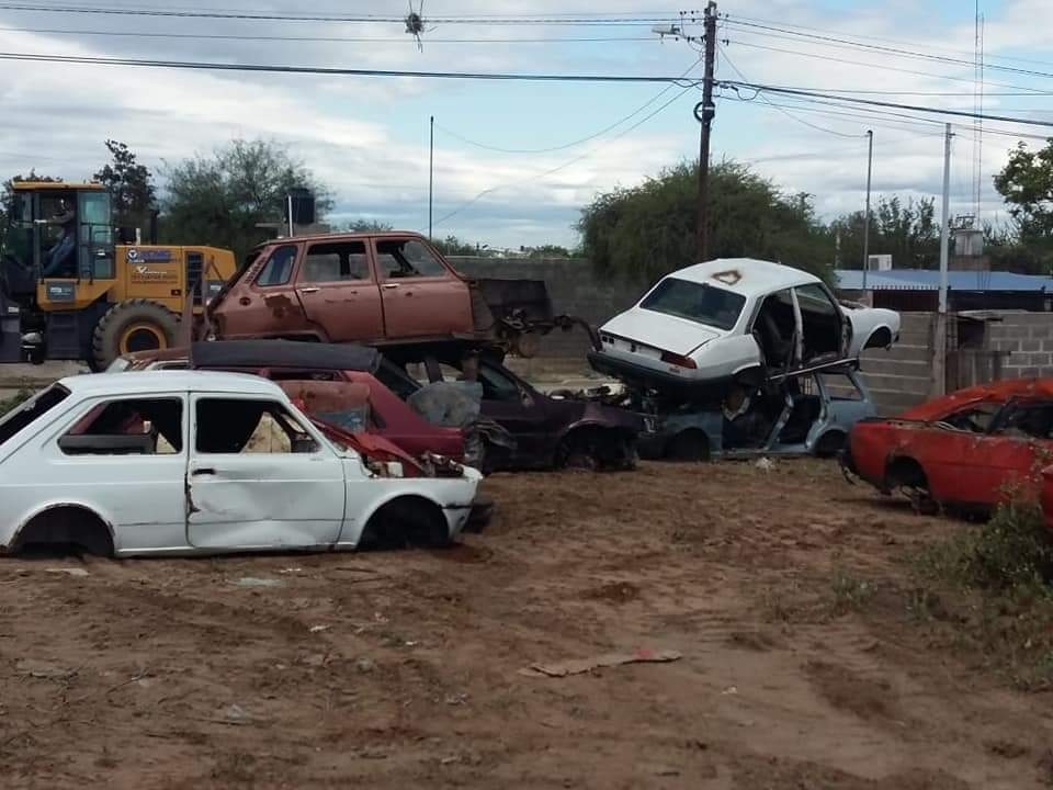 Personal del Ministerio de Infraestructura y Obras Civiles pertenecientes a la dirección de Automotor e Intendencia del CAPE y de Vialidad Provincial continuaron trabajando en la mañana de hoy en el proceso de limpieza de terrenos con chatarra.