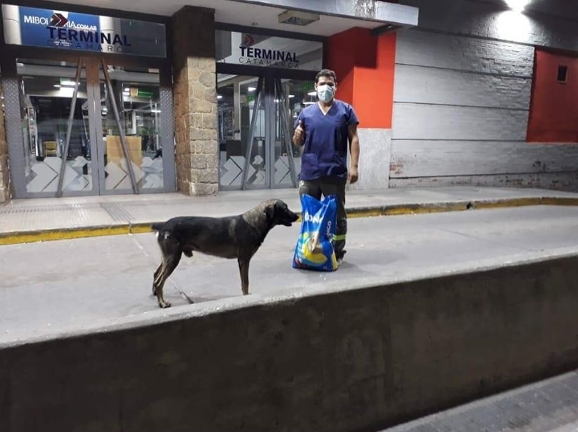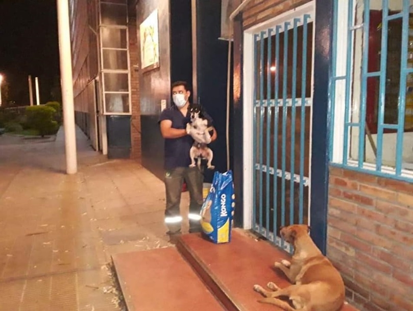 En la noche del martes, personal del departamento de Zoonosis Municipal recorrió distintos sectores de la Capital para darles de comer a algunos perritos de la calle que también la están padeciendo en estos días de cuarentena.