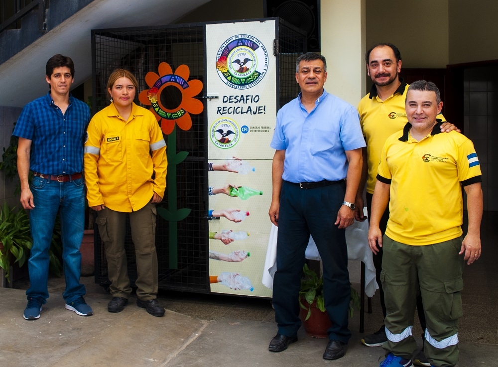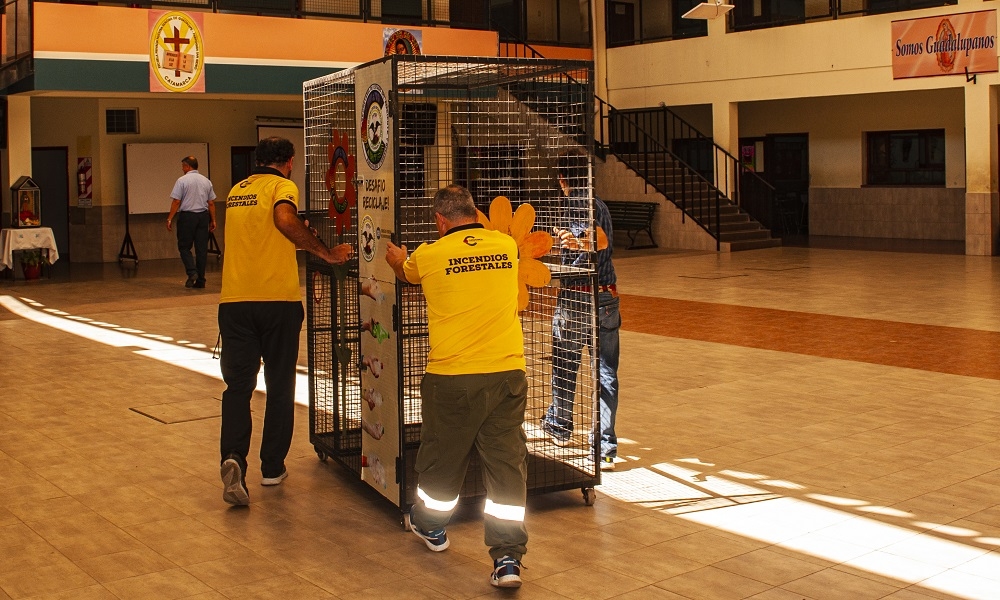 Comprometidos con el cuidado del ambiente, la Brigada de Lucha Contra Incendios Forestales del Ministerio de Agua, Energía y Medio Ambiente de la Provincia, instaló el día de hoy un contenedor - recolector de tapas y botellas plásticas en el patio principal del Colegio Nuestra Señora de Guadalupe.