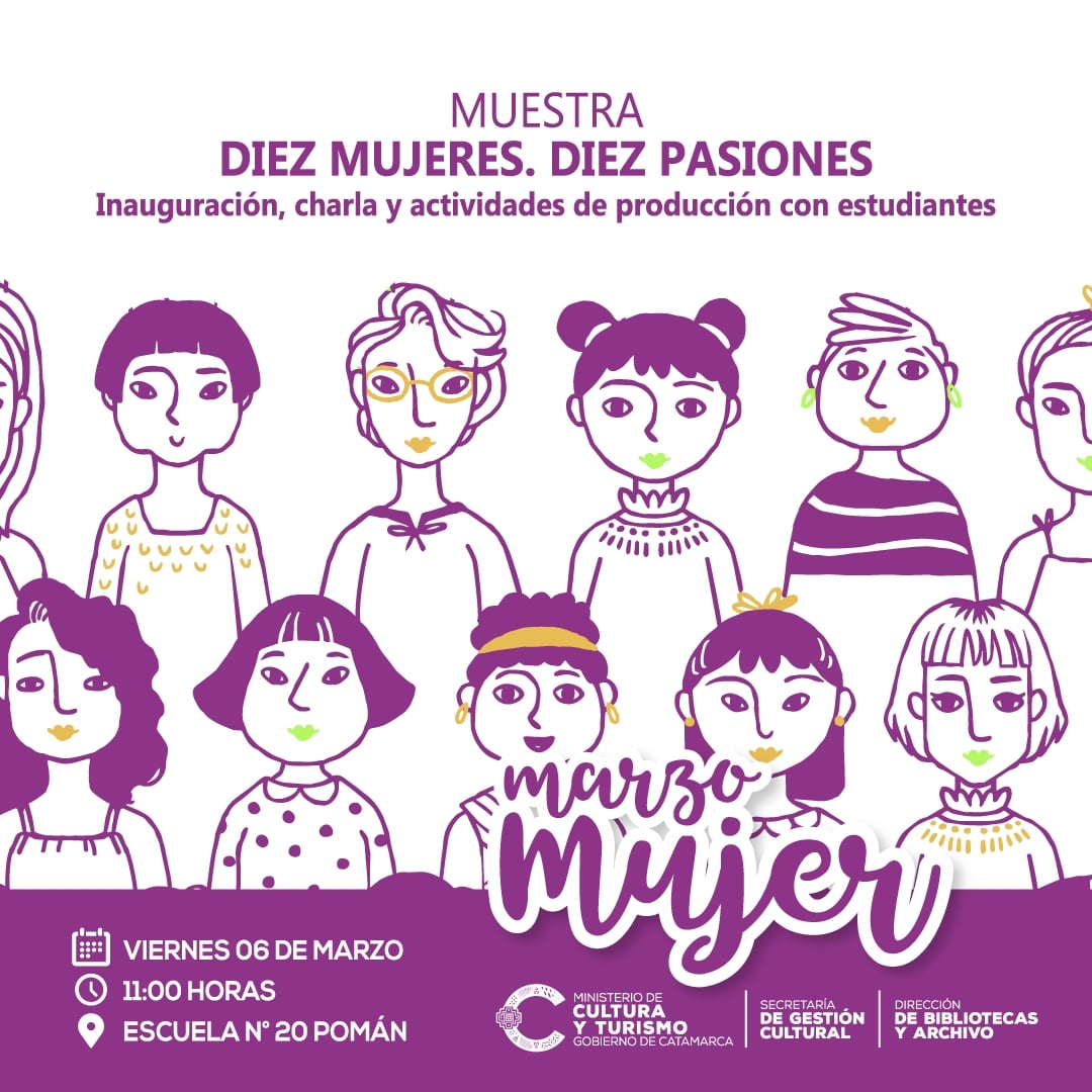 De eso se trata la muestra “Diez Mujeres, Diez Pasiones” que la Dirección de Bibliotecas y Archivo de la Secretaría de Gestión Cultural lleva como propuesta de reflexión y trabajo a la Escuela N° 20 de Pomán.