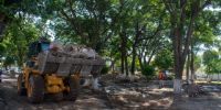 En el segundo día de ejecución de la obra, la maquinaria continúa con la remoción del suelo que será reemplazado en su totalidad. Los trabajos se realizan bajo la supervisión de la directora de Estudios y Proyectos, Valeria Gallo, quien -junto a las arquitectas encargadas de diseñar el proyecto de remodelación- recorrió hoy por la mañana la obra.