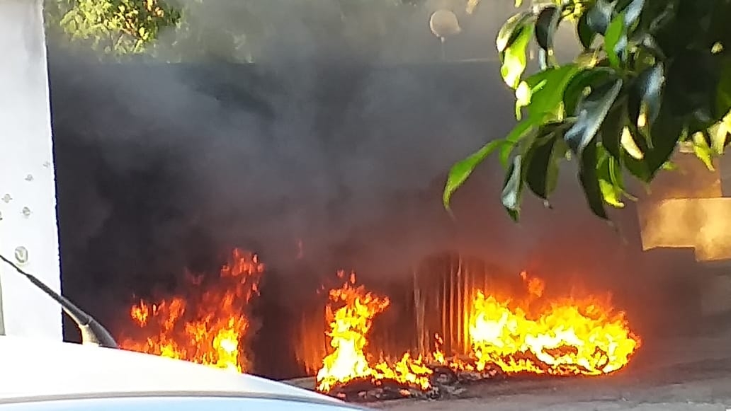 Grandes columnas de humos pueden observarse en Avenida San Martin, al frente donde funciona la Escuela Especial N°9 "Fray Mamerto Esquiú" donde concurren "niños especiales" en la ciudad de Recreo.