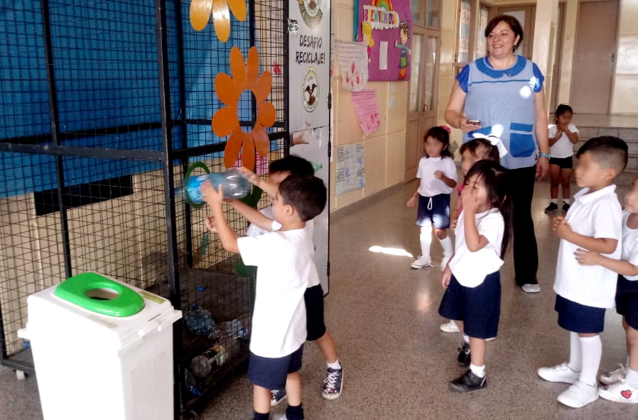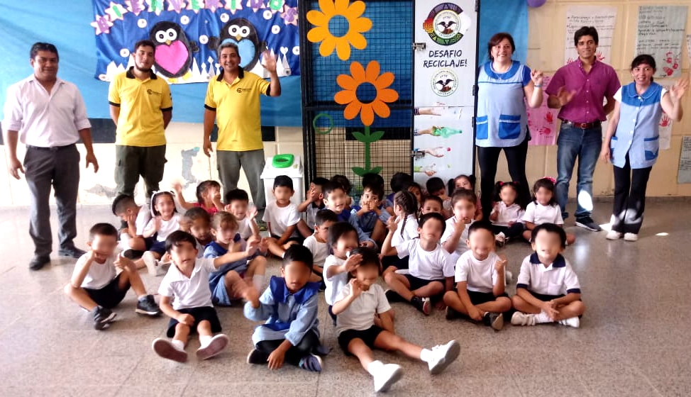 Las docentes Carolina Grima, Flor Herrera, Luis Ramos, acompañados por su vicedirectora Roxana Regalado y la directora del establecimiento Silvia Vásquez, acompañaron a los brigadistas durante su visita, quienes llevaron un mensaje a los pequeños sobre los cuidados del medio ambiente y la importancia del reciclado, en especial de los plásticos.