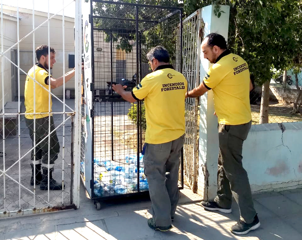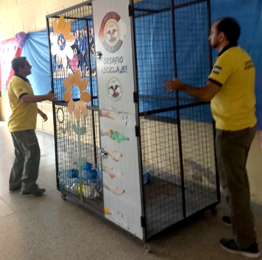 La Brigada de Lucha Contra Incendios Forestales que depende del Ministerio de Agua, Energía y Medio Ambiente, se presentó en el Jardín de infantes de la Escuela N° 182 “Luis Franco, del J.I.N. 7, a los efectos de colocar un contenedor de tapitas y botellas plásticas para concientizar a los más pequeños sobre el cuidado del medio ambiente.