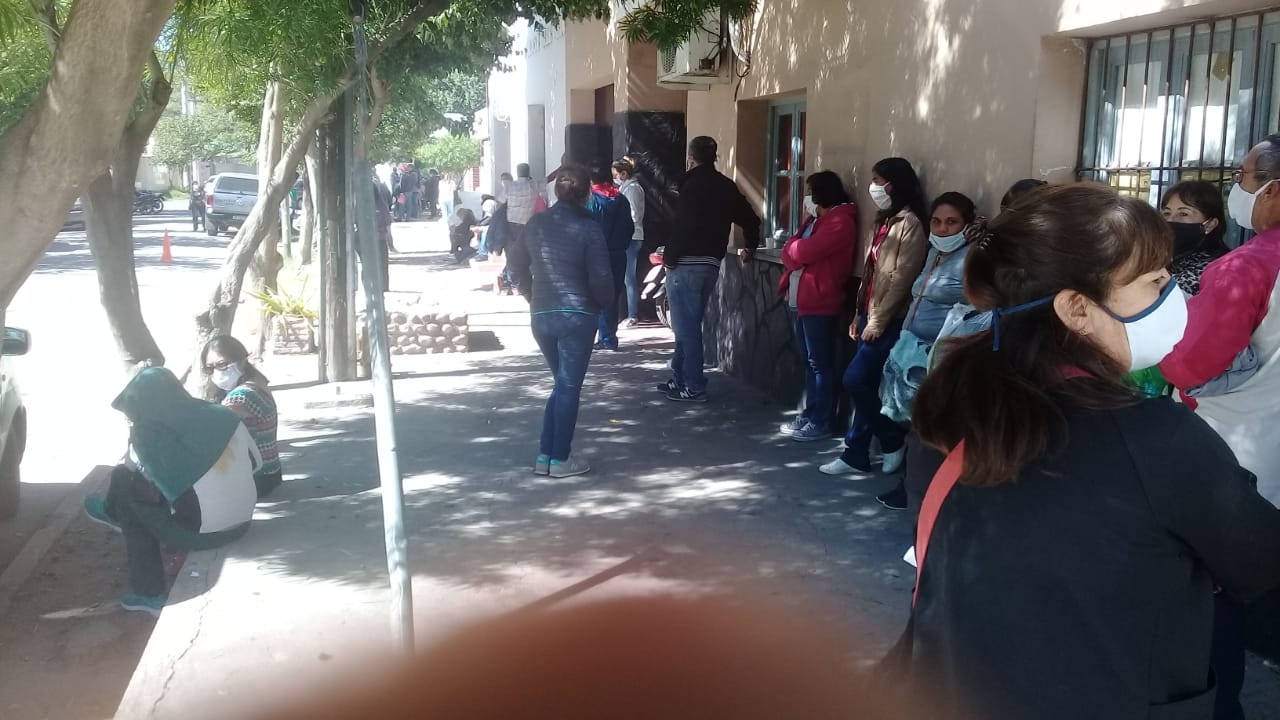 Por este motivo, a pesar que rige el aislamiento obligatorio por el coronavirus, cientos de personas esperan -cerca del mediodía- ser atendidos y cumplir con sus deudas. Se estima, sin exagerar, unas tres cuadras de espera, llegando la fila hasta los semáforos de Tres Puentes, por la calle Padre Esquiú..