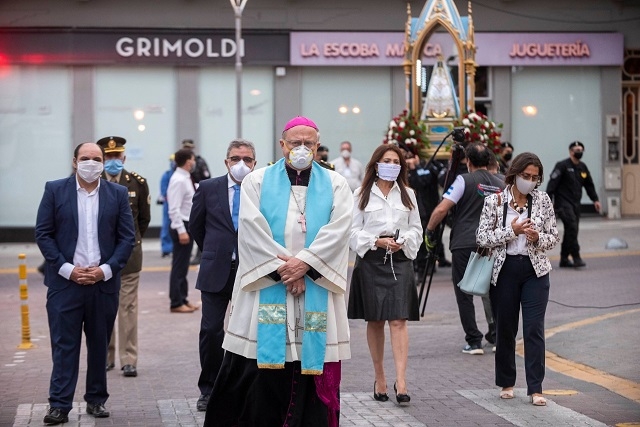 La marcha de la Venerada Imagen, acompañada físicamente por sólo un grupo de personas, pero por una inmensa cantidad de devotos frente a pantallas o aparatos de radio, avanzaba irradiando amor, paz, esperanza.