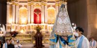 Entonces comenzó la Procesión. “«María Madre del Pueblo Esperanza nuestra», camina con nosotros”, pedían los guías, citando el tema del Congreso Mariano Nacional que se iba a realizar estos días y fue suspendido para que no se extienda más la pandemia.