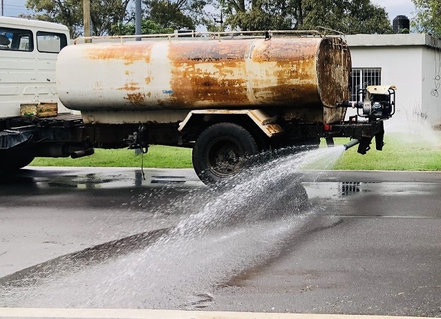 Personal de la Secretaría de Ambiente que conduce Gabriela Molina, realizó tareas de adaptación de una bomba de agua a dos camiones híbridos, para poder utilizarlos en el operativo de limpieza de las veredas de la ciudad.