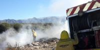 Una cuadrilla de combatientes de la Brigada pudo contener de manera inmediata el foco ígneo que se desplazaba por un basural afectando además arbusto y pastizal de la zona.