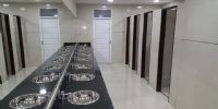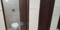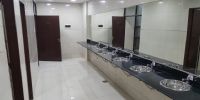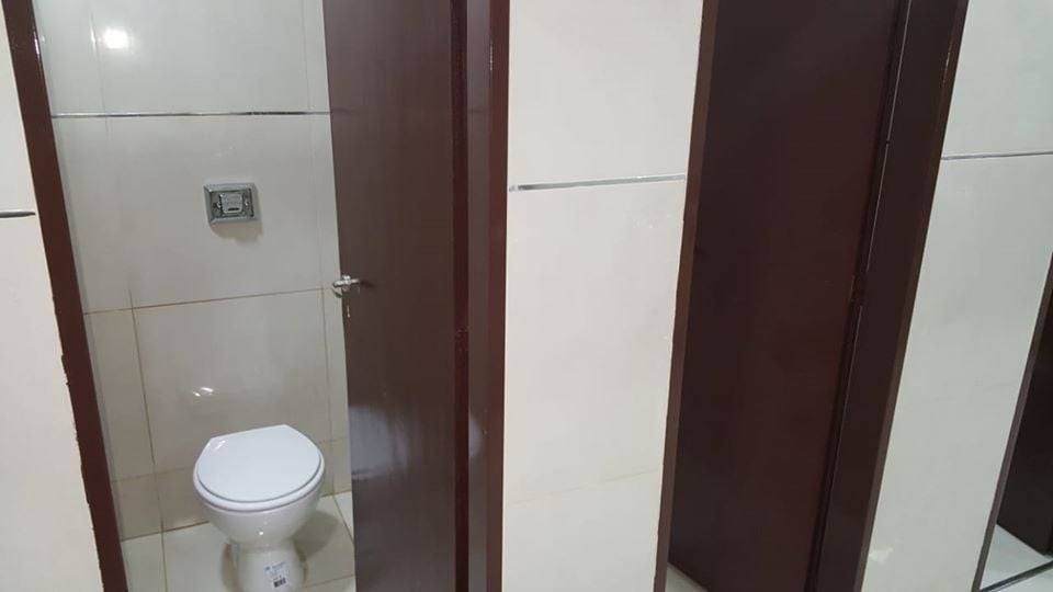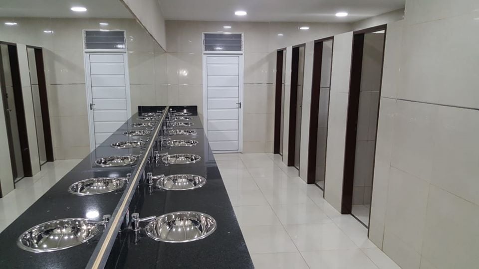 Por su parte en el baño de damas se colocó cuatro inodoros y una mesada de aproximadamente 7 metros con 8 piletas lavamanos.