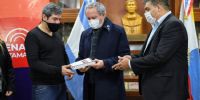 Por una parte, el secretario parlamentario de la Cámara alta, el Dr. Franco Guillermo Dré, entregó un ejemplar de dos tomos de los “Escritos económicos”, de Federico Schickendantz, Samuel A. Lafone Quevedo, compilados por el profesor Raúl Edgardo Caro, (4ta. ed. Ampliada).