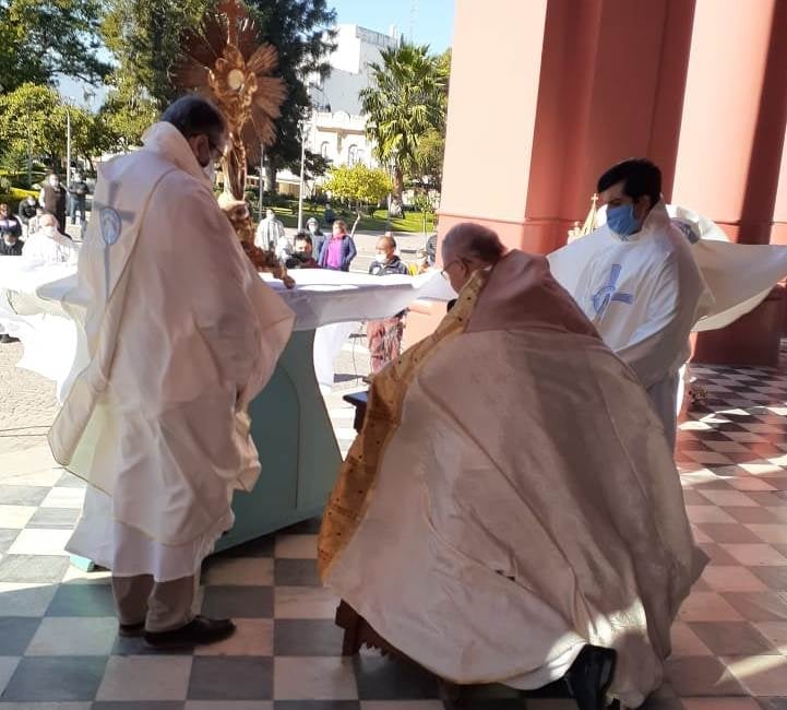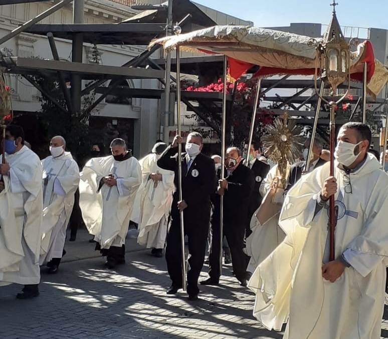 En este tiempo marcado por la pandemia, durante la mañana del domingo 14 de junio, la Iglesia que peregrina en Catamarca celebró gozosa la Solemnidad de Corpus Christi. La Misa central fue presidida por el Obispo Diocesano, Mons. Luis Urbanc, y concelebrada por sacerdotes del Decanato Capital, en el altar mayor de la Catedral Basílica y Santuario de Nuestra Señora del Valle.