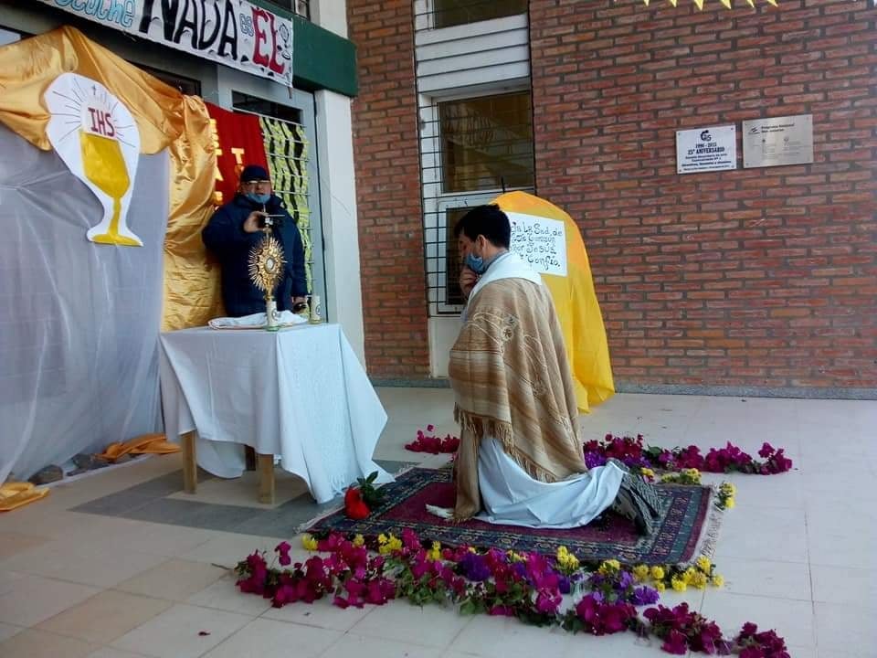 En este tiempo marcado por la pandemia, durante la tarde fría y ventosa del domingo 14 de junio, la Iglesia que peregrina en la ciudad de Recreo, celebró la Solemnidad de Corpus Christi.