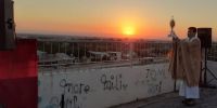 Desafiando el viento y el frío, se realizó la procesión del Santísimo Sacramento llevado por el Párroco Cháves.