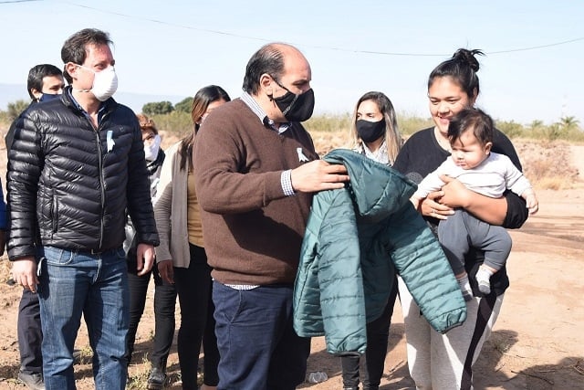 En el inicio de la entrega, los vecinos reciben frazadas, colchas y cuellos polares, pero además se continuará relevando las necesidades de cada familia.