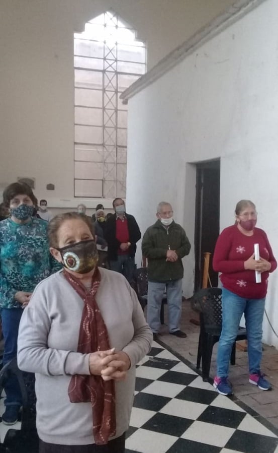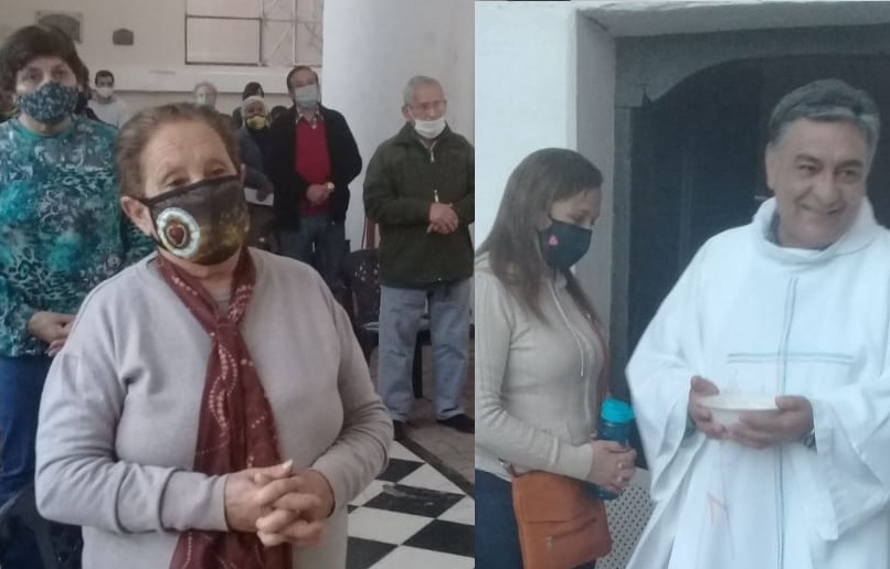 Los vecinos, que acudieron sonrientes y entusiasmados a la celebración religiosa, mostraban los tapabocas y observaban todas las medidas de distanciamiento preventivo dispuestas por la pandemia del coronavirus. Incluso en el ingreso del sagrado templete, se habían dispuestos recipientes conteniendo alcohol en gel para uso de los fieles.