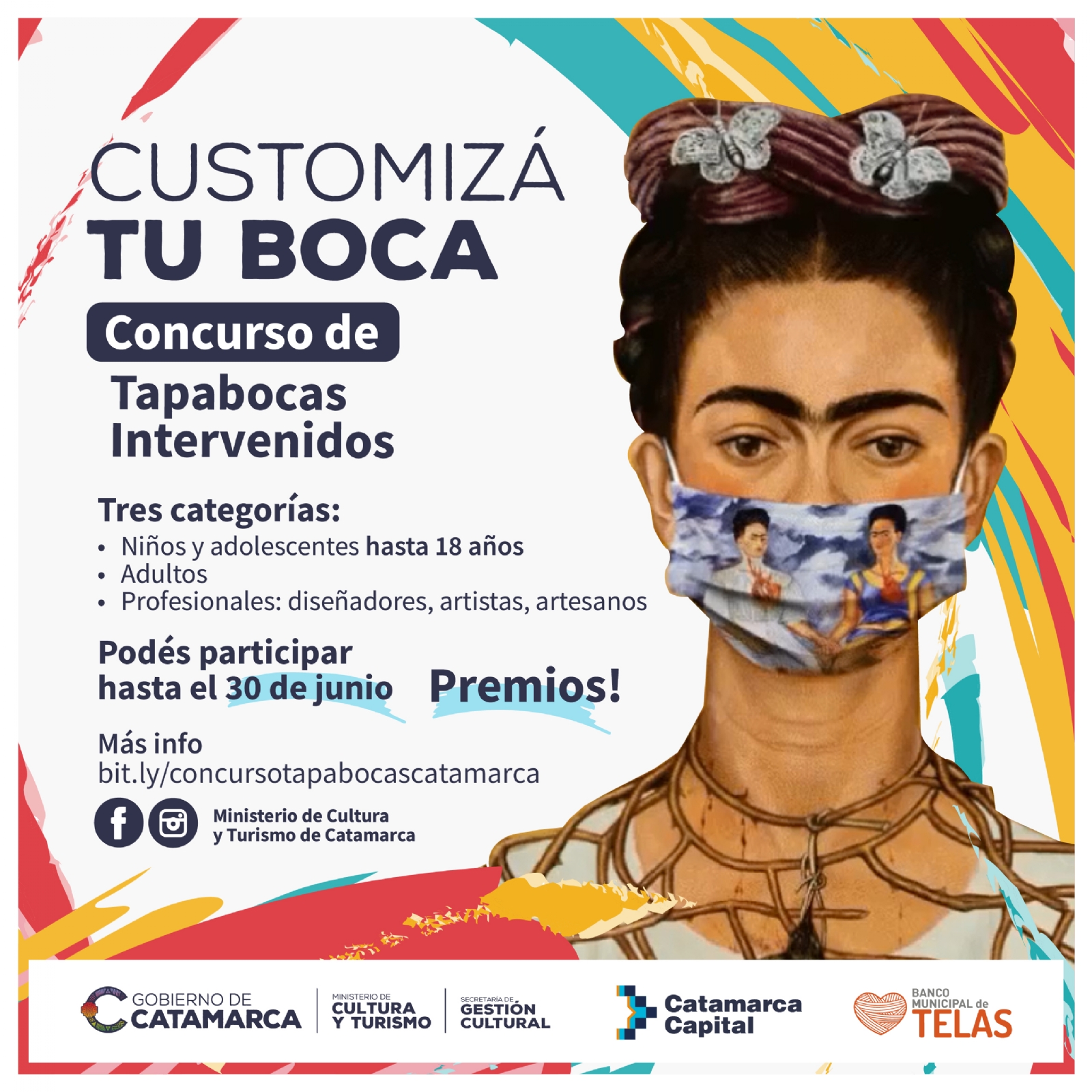 Los participantes deberán subir fotos de sus barbijos intervenidos a su cuenta de Facebook con el hashtag #CustomizaTuBoca, etiquetando al Ministerio de Cultura y Turismo de Catamarca y publicando la siguiente información: nombre y apellido, y categoría en la que participa (niños y adolescentes, adultos, creativos). Además, especificar si su tapaboca fue adquirido o realizado y qué técnicas, materiales, idea/concepto desarrolló en su producción.