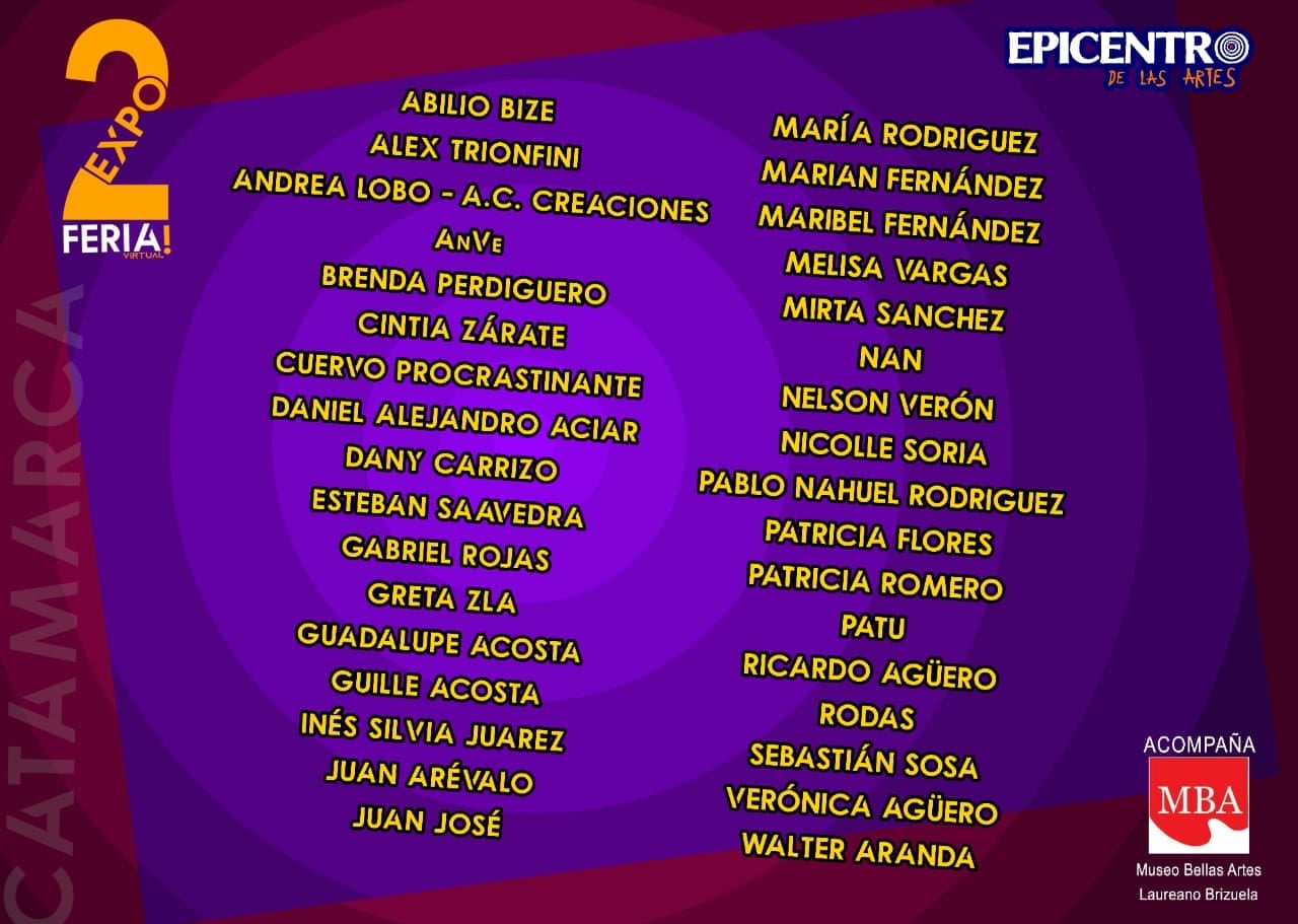 Para visitar las expo feria “Epicentro de las artes”, ingresar al grupo de Facebook ARTISTAS VISUALES CATAMARCA (https://www.facebook.com/groups/1553659758224986/).