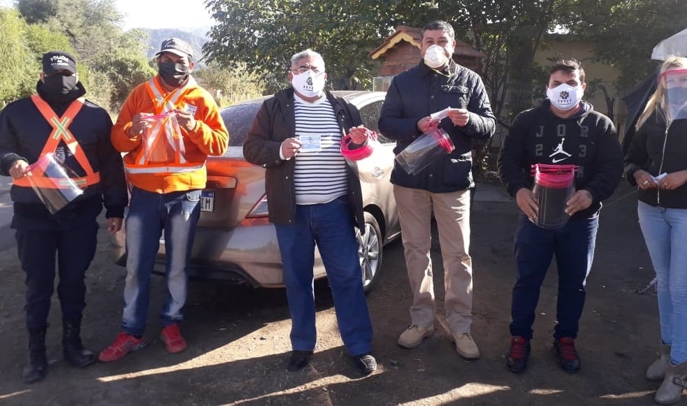 La entrega comenzó en el día de ayer, con la visita de una delegación de los "plásticos" catamarqueños, a los retenes de sanitarios y de seguridad instalados sobre la Ruta Nacional 38, en las proximidades de Chumbicha, cabecera del departamento Capayán, el puesto de la Policía Caminera, en Nueva Coneta, el control del CIIC (ex Sussex), en el Acceso Sur a esta Capital.