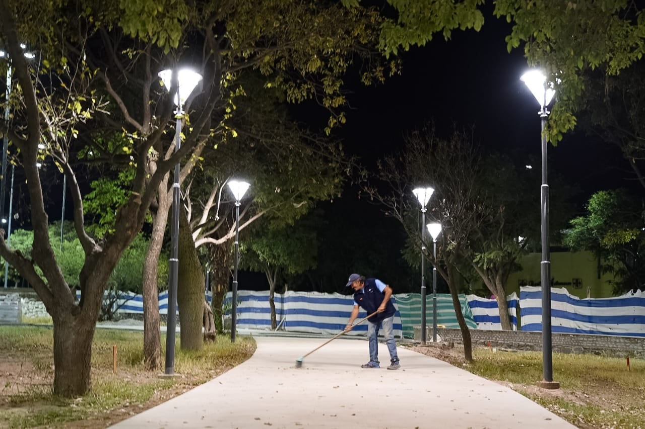 La obra tiene un 80 por ciento de avance, pero su nuevo y avanzado sistema de iluminación ya fue concluido, lo cual permite que este nuevo espacio verde se convierta en un punto de encuentro para los vecinos mucho más seguro.