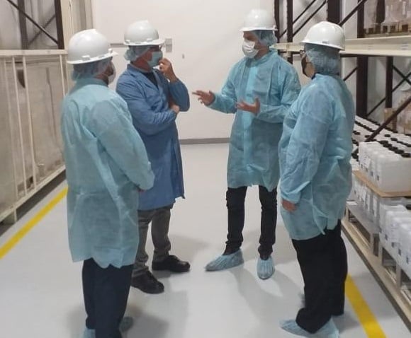 Los funcionarios provinciales fueron recibidos por el gerente de la planta de Catamarca, Ernesto Martinez, quién tuvo la gentileza de realizar una donación de 1000 litros de alcohol en gel producidos en el propio laboratorio.