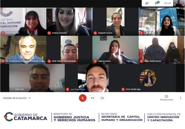 Autoridades y referentes de los distintos municipios de Catamarca y del Concejo Deliberante de la Capital, junto al secretario de Capital Humano, Martín Molina y la directora Provincial del C.I.C. (Centro de Innovación y Capacitación), Andrea Morales, participaron ayer de una reunión a través de videoconferencia que tuvo como objetivo difundir entre los actores municipales la oferta formativa virtual, que se pone a disposición de los municipios en el marco del “Programa de Formación y Capacitación del Agente Municipal”.