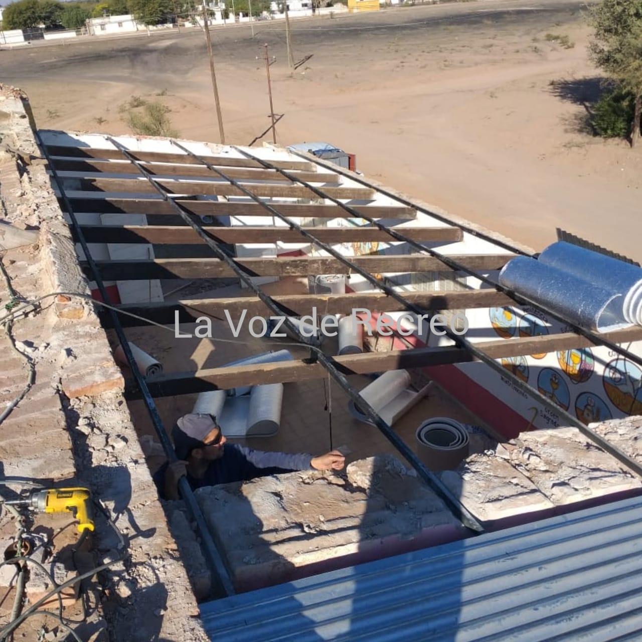 Tal como había confirmado el intendente Luis Polti a La Voz de Recreo, "hoy comenzaron los trabajos de la colocación del techo a través de la Empresa Sorda y el trabajo permanente del personal de la Delegación Municipal de La Guardia y Municipalidad de Recreo, hicimos un compromiso y lo estamos cumpliendo".
