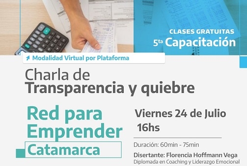 En la oportunidad será sobre “Transparencia y quiebre” y se concretará el próximo viernes 24 de Julio a las 16 horas. La disertación estará a cargo de Florencia Hoffmann Vega, diplomada en Coaching y Liderazgo Emocional.
