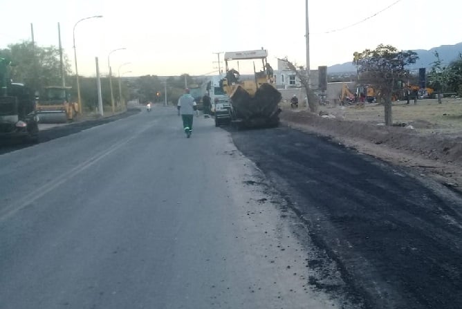 La semana pasada, los trabajos que ejecutan empleados de Vialidad Provincial, completaron la pavimentación de ambas manos, sobre las banquinas del "tobogán" que vincula el monumento a Felipe Varela, en la entrada a la Cruz Negra, con el sector de la ex discoteca "Muana".