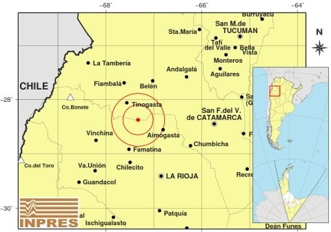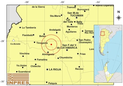 Epicentro: 92 km al O de San F. Del Valle De Catamarca; 139 km al N de La Rioja; 46 km al N de Aimogasta -28.172 (lat) -66.622 (long)