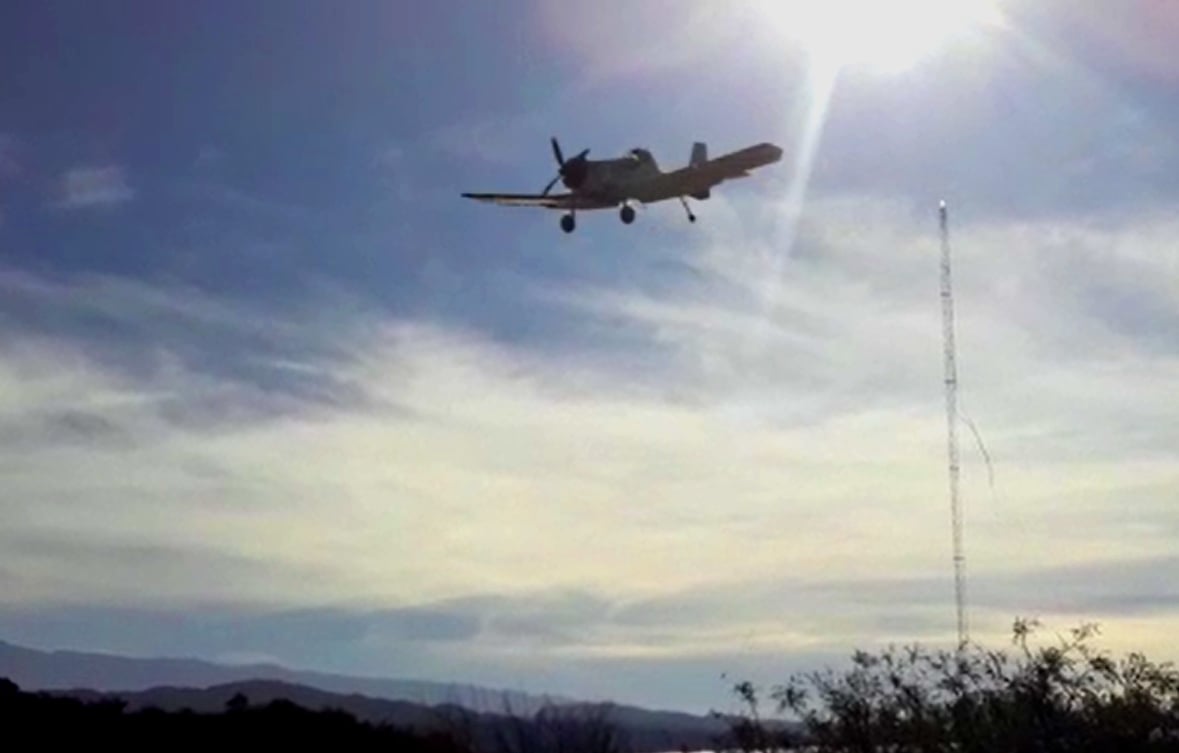 Debido la intensidad de las llamas, se solicitó la participación del avión hidrante, el cual hace base en el Aeropuerto Internacional Felipe Varela, a los efectos de realizar un disparo y así disminuir la radiación para que los combatientes pudieran controlarlo con trabajos manuales de sofocación.