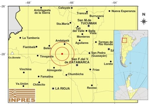 Epicentro: 85 km al NO de San F. Del Valle De Catamarca; 163 km al N de La Rioja; 47 km al S de Andalgalá -27.989 (lat) -66.430 (long)