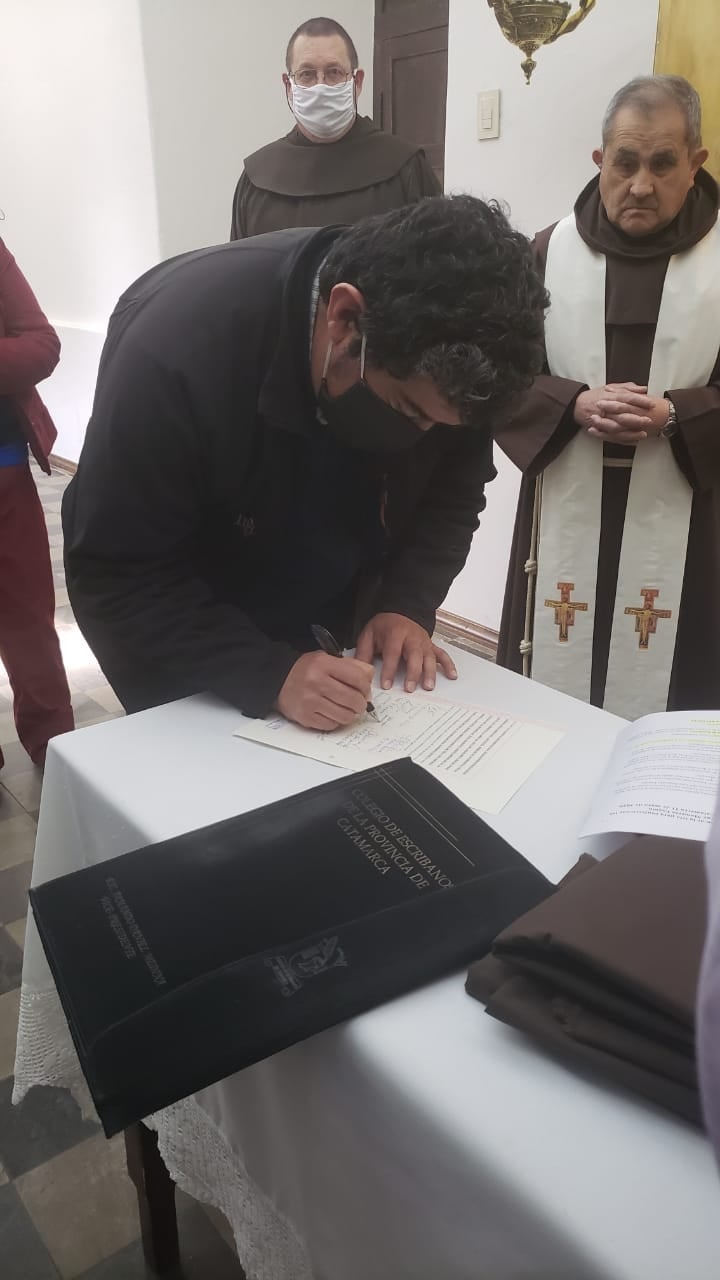 En primer lugar, el escribano se constituyó en el lugar y dio lectura al acta correspondiente, que fue firmada por los frailes presentes y demás testigos.