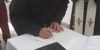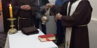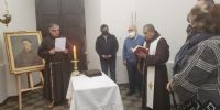 Fray Eligio comenzó las oraciones. Luego Fray Pablo Reartes abrió el relicario y bajó la cestilla con la reliquia a la mesa. Se bendijo e incensó y los fieles rezaron la oración por Fray Mamerto. Después los presentes firmaron un pergamino que posteriormente se colocarán al lado del relicario.