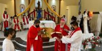 En su homilía, Mons. Urbanc comenzó agradeciendo al P. Flores por su trabajo en la comunidad y su generosa disposición. También agradeció al P. Brizuela y lo animó en su nueva misión, destacando que será párroco por primera vez por lo que pidió a la comunidad un especial acompañamiento al sacerdote.