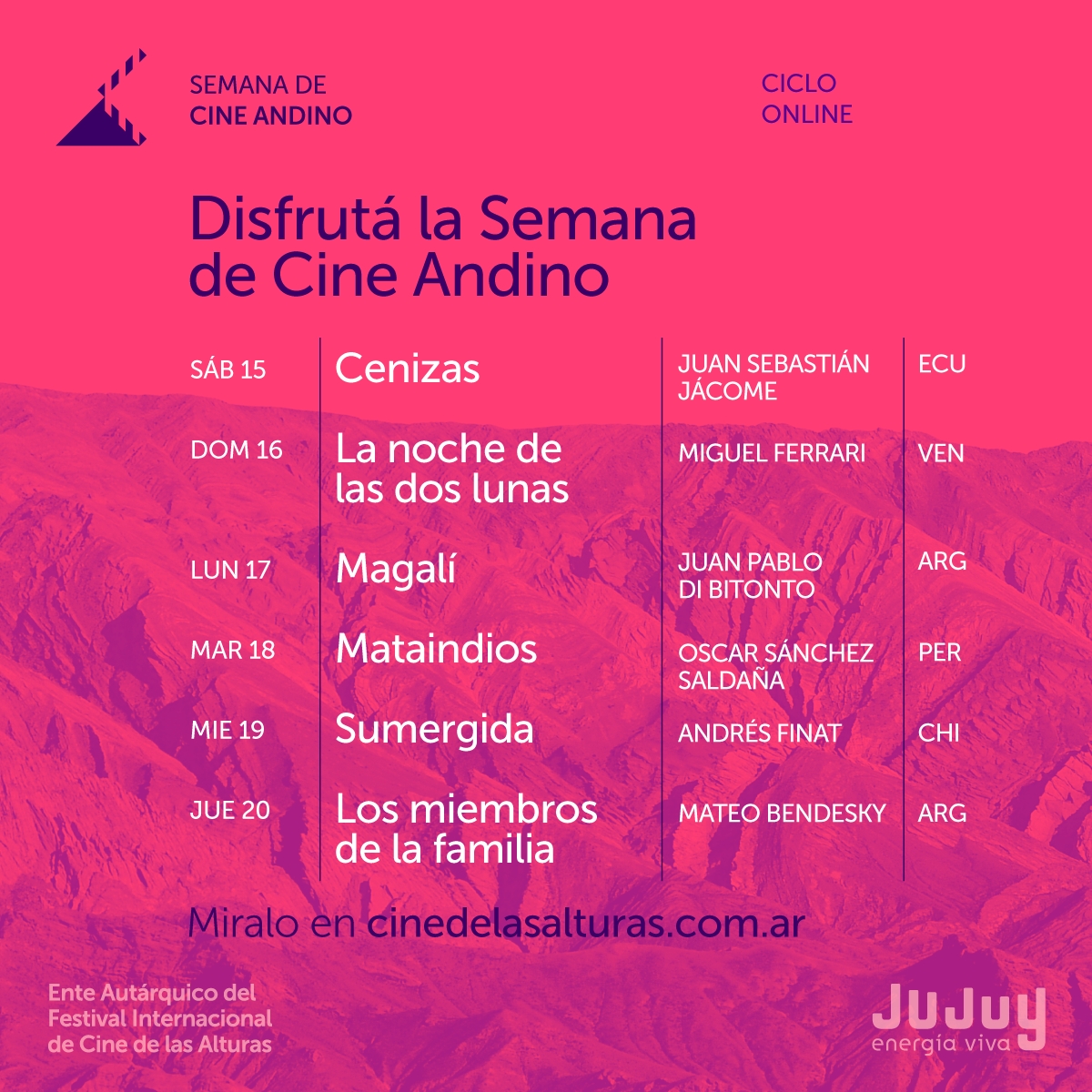 Desde hace tres años, la Semana de Cine Andino recorre las capitales de Argentina, Bolivia, Chile, Colombia, Ecuador, Perú y Venezuela llevando los títulos más destacados del Festival Internacional de Cine de las Alturas a los países andinos. En esta cuarta edición, y teniendo en cuenta el contexto actual, el ciclo tendrá un formato online, lo que permitirá a los espectadores poder disfrutar de estas películas por primera vez desde sus casas.