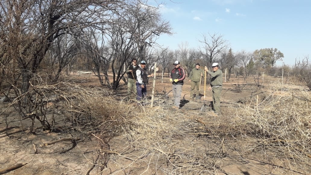 Agentes de la dirección de Vivero y Forestación del organismo ambiental provincial se encuentra en La Puntilla departamento Tinogasta, con motivo de ayudar en la recuperación del terreno que fue arrasado por los distintos focos de incendios producidos en la zona.