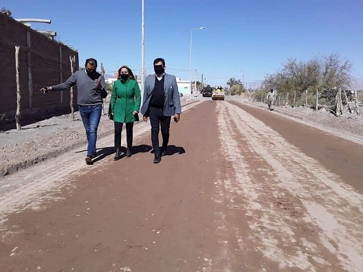 La intendenta Roxana Paulón junto a su par de Santa María, Juan Pablo Sánchez, el Jefe de Vialidad Provincial de Fiambalá y el Concejal Luís Reales, supervisaron los avances de las obras Camino a Termas y Giro Obligatorio.