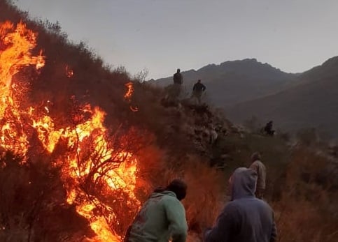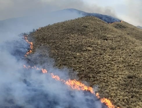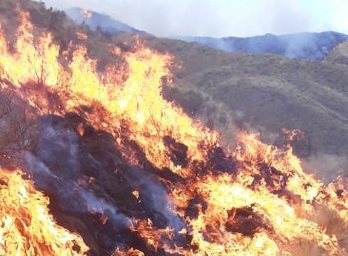 A causa del viento, desde la Brigada de lucha contra incendios forestales se informó que el ascenso se lleva a cabo desde la localidad de Los Angeles, en el departamento Capayán.