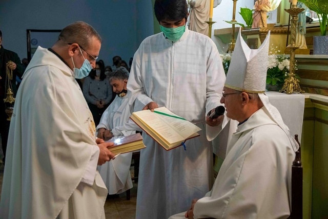 Durante la celebración, el Obispo bendijo el agua con la que el Padre Robledo bendijo a los presentes, y luego distintos momentos de la ceremonia, le entregó los elementos de la liturgia, como el Evangeliario, el copón y las vinajeras, los óleos sagrados y las llaves del Sagrario.