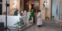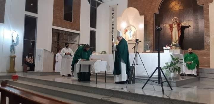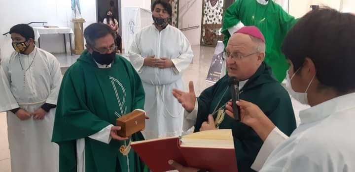 Fue durante la Santa Misa presidida por el Obispo Diocesano, Mons. Urbanc, concelebrada por el párroco saliente, Pbro. Julio Murúa, y el diácono Sergio Colósimo.