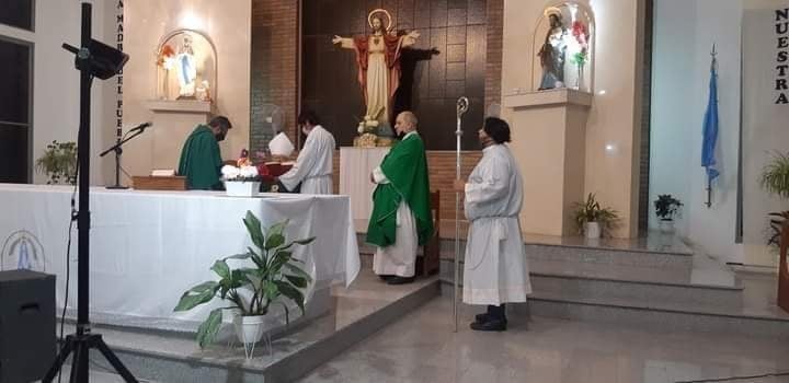 La ceremonia se llevó a cabo en el templo parroquial ubicado en calle 1 de mayo, frente a la plaza 25 de Agosto, más conocida como Plaza de la Estación, y contó con la participación de fieles de todas las comunidades de la jurisdicción.
