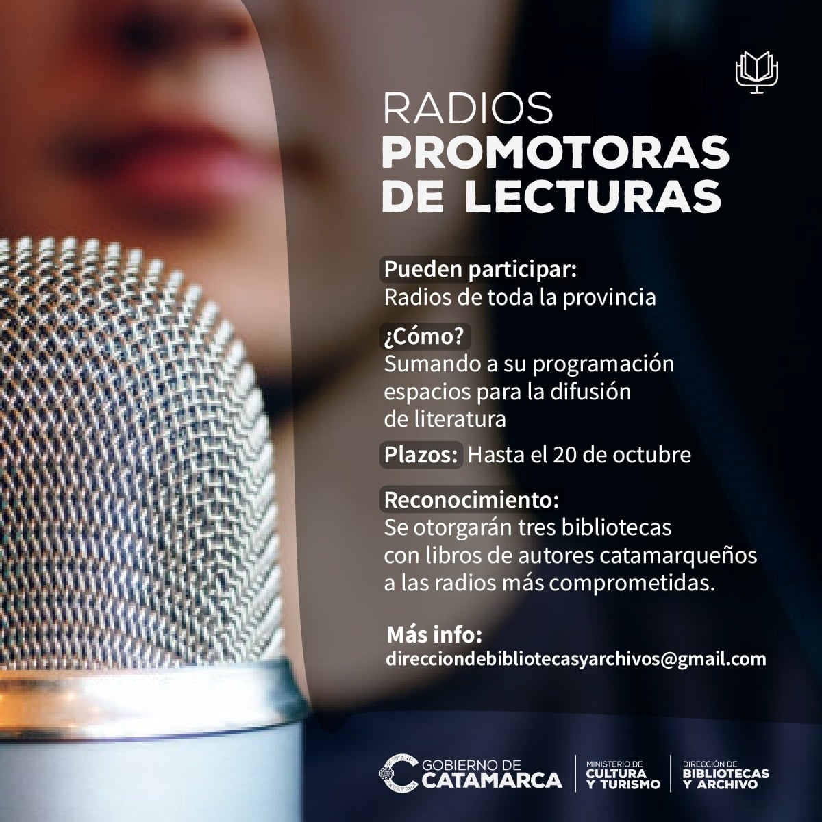 A partir de valorar la importancia que la radio, como medio formativo e informativo, puede cumplir en la promoción de la lectura, sobre todo en este tiempo, se invita a las radios de toda la provincia a incluir en su programación espacios para la divulgación y la promoción de la literatura, ofreciéndole al público infantil, juvenil y adulto la oportunidad de estar en contacto con la tradición oral, cuentos, mitos y leyendas propios de cada lugar, como así también con la literatura universal.